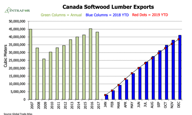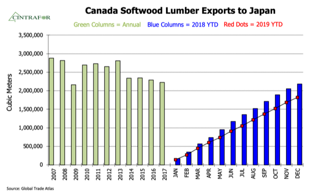 - China’s softwood lumber imports grew 10% but U.S. softwood lumber exports to China declined by 60%.